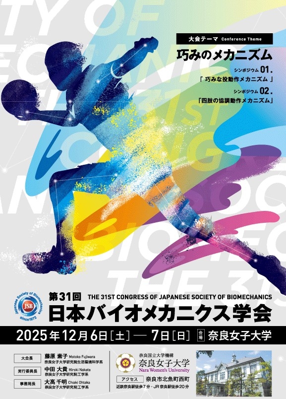 主催:日本バイオメカニクス学会 日時:2025年12月6日(土) ~ 12月7日(日) 会場:奈良女子大学