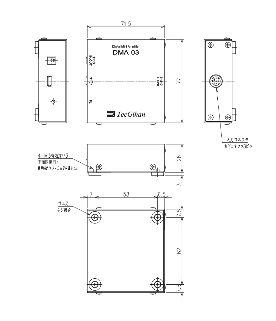 | コネクタ | ひずみ入力HR212コネクタ8ピン(HRS製) トリガPAコネクタ(ロック式)(JST製) 外部BALPAコネクタ(ロック式)(JST製) |